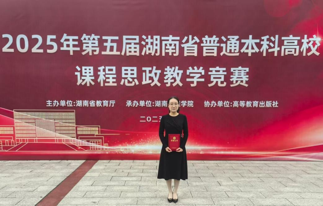 (通讯员:段虹伶)在深入学习贯彻党的二十大精神、全面推进教育强国建设的重要时期,捷报传来!在10月19日至20日由湖南省教育厅主办的第五届湖南省普通本科高校课程思政教学竞赛中,我院张闻芳老师凭借其精湛的教学技艺、深厚的育人情怀和出色的现场表现,从众多优秀选手中脱颖而出,勇夺一等奖,实现了我校在该项赛事的历史性突破!