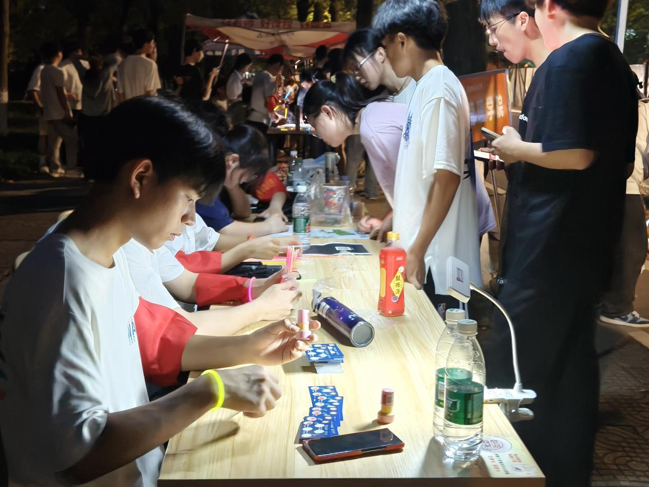 活动伊始,学生工作人员及志愿者提前就位,精心布置场地,在各个打卡点位设置摆台作为标识。待参与人员陆续签到后,学生工作人员为其分发荧光棒与集章卡,装备发放环节落定,参与人员手持荧光棒踏上夜跑征程。沿途各点位,志愿者严格按照流程引导跑步同学完成盖章打卡工作,全体参与人员均有序完成既定路线后均凭集章卡完成登记核验,为此次夜跑活动画上圆满句号。