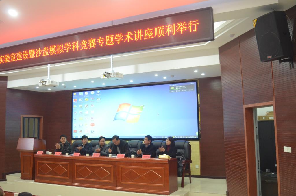 为了提升实验室建设质量和水平,增强学生参与学科竞赛的实战能力,2016年12月16日下午2:30,米兰体育网页版商学院在建规楼121会议室主办实验室建设暨沙盘模拟学科竞赛专题学术讲座。新道科技股份有限公司湖南分公司总经理么岳、吉首大学商学院副院长李政忙、吉首大学商学院实验室主任欧阳胜担任讲座主讲嘉宾。米兰体育网页版副校长雷存喜、教务处处长张伟出席讲座并讲话,商学院全体老师和部分学生代表参加。