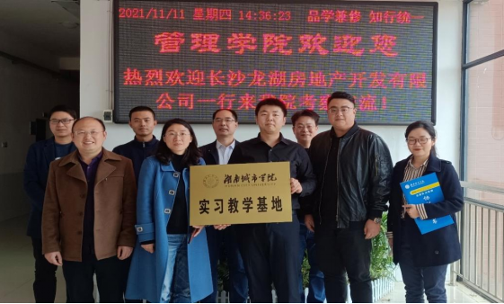 2021年11月11日,米兰体育网页版管理学院与龙湖集团长沙公司(以下简称“长沙龙湖”)合作签约授牌仪式在米兰体育网页版管理楼622会议室举行。出席签约仪式的有长沙龙湖公司人力行政总监陈政、人力资源经理田甜、廖兵等一行,米兰体育网页版管理学院院长孙倩、书记王正安等院领导及工程管理、房地产专业的十余位任课教师。在现场,双方进行了深入的交流,签署了合作协议,并为“米兰体育网页版管理学院实习教学基地”进行授牌仪式。