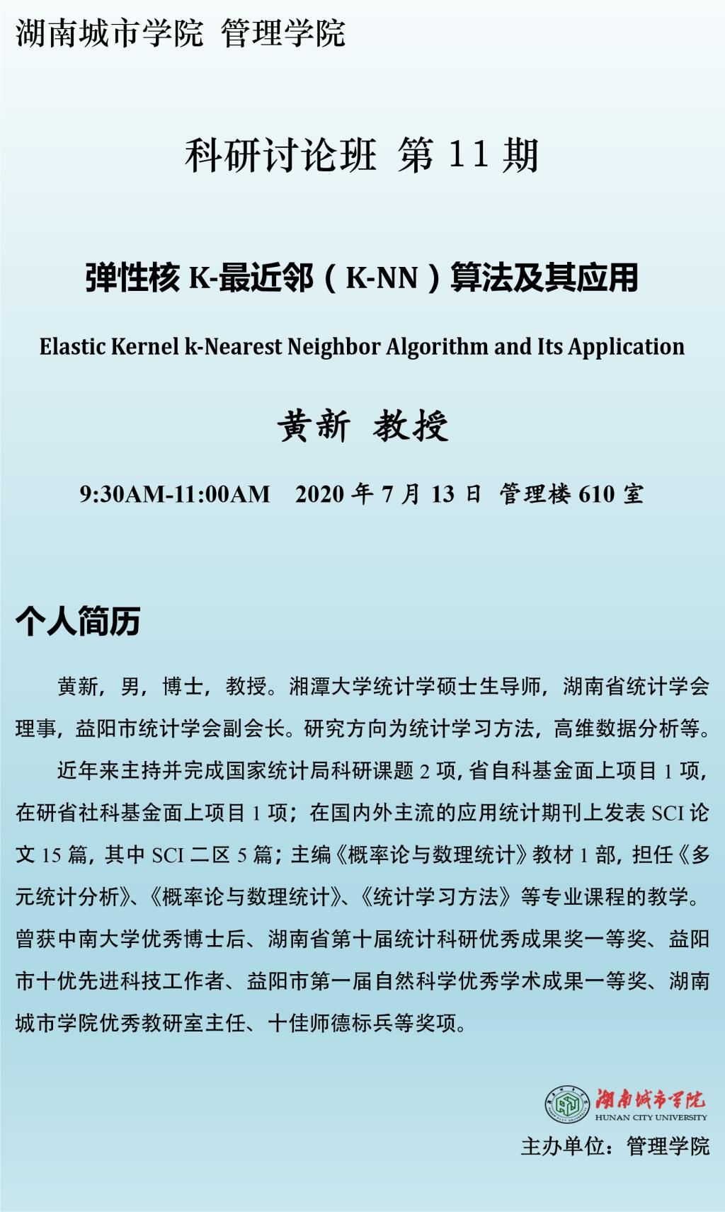 【管院科研论坛】11 黄新 教授:弹性核K-最近邻算法及其应用