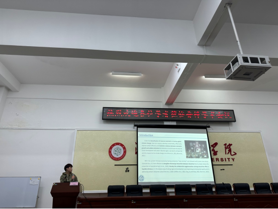 第六位汇报人是来自中南大学的秦佳奇,汇报的题目是《Can industrial collaborative agglomeration improve carbon emission efficiency?Empirical evidence from China》。Using a balance panel data of 30 provinces and municipalities of China from 2008 to 2019, this paper investigates the influence of industrial co-agglomeration on carbon emission efficiency and its mechanism. The results uncover that industrial co-agglomeration can improve the carbon emission efficiency but it will have a negative impact on carbon emission efficiency at the initial stage,namely there is a U-shaped relationship between the two, which is credible after a series of robustness test. The regional heterogeneity results unveil that the U-shaped relationship is significant at eastern area while the inverted U-shaped relationship is presented at western area, and the influence of industrial co-agglomeration is not significant at central area. The mechanism identification displays the U-shaped impact of industrial co-agglomeration is mainly through industrial structure upgrading and green technological innovation. In addition, the industrial co-agglomeration at local area has significant spillover effect and will influence the carbon emission efficiency of neighboring areas, which also present a U-shaped relationship.