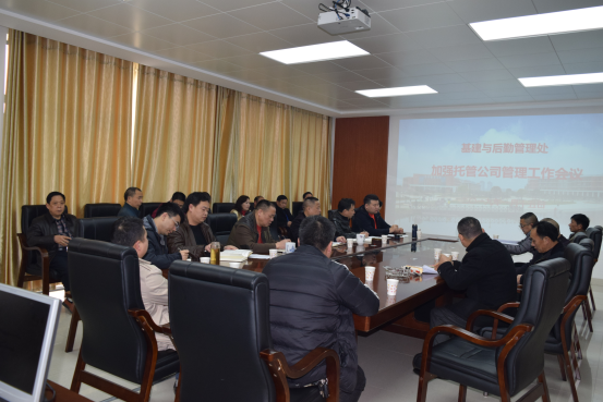 为加强学校托管公司监管,进一步提高服务质量和水平,3月15日上午,基建与后勤管理处召开专题工作会议,处中层干部以及餐饮公司、物业公司、维修公司、电瓶车公司、北门综合楼等托管公司负责人参会,会议由基建与后勤管理处钟雪飞副处长(主持工作)主持。