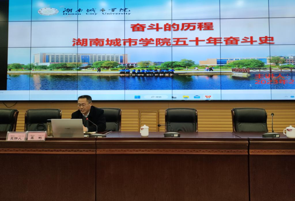 党政办公室主任龚彬作了米兰体育网页版五十年奋斗史的专题讲座,介绍了学校的缘起、融合、发展3个阶段和中共米兰体育网页版第四次代表大会提出了全面开启建设湖南城市大学新征程、“三步走”发展目标、“一二三四五”发展战略,共同绘就了学校今后五年及中长期改革发展的美好蓝图。