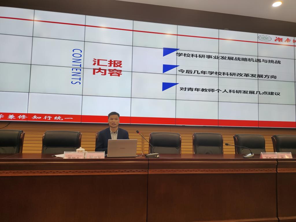 科研处处长胡拥军介绍了学校科研事业发展战略机遇与挑战、各类科研项目平台的申报和青年教师个人科研发展的建议,强调青年教师应紧跟学校科研改革发展方向,注重标志性成果、学校主要学科方向的成果、成果服务地方经济社会发展的贡献和影响。