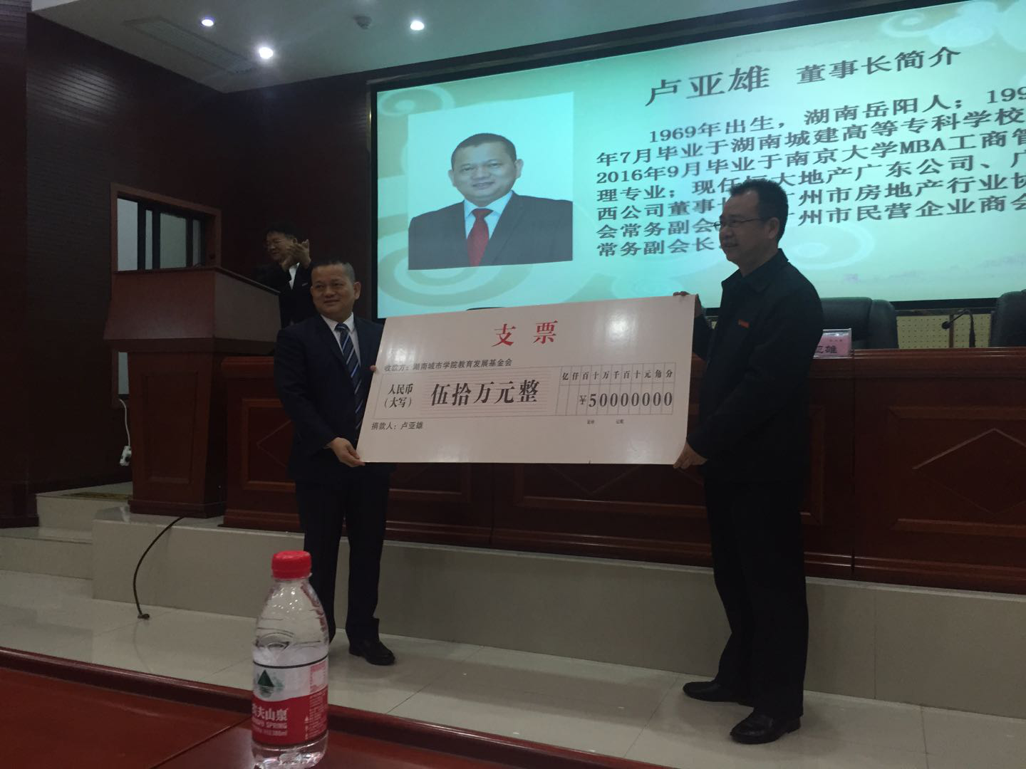 校友卢亚雄捐赠人民币五十万元